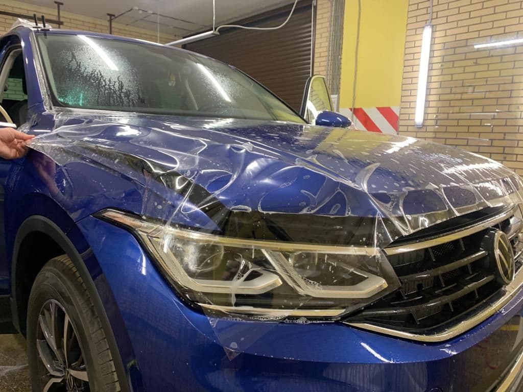 Для оклейки фар используется другой тип пленки – виниловая пленка с определенными показателями пропускания света. В отличии от тонировочной пленки виниловая пленка имеет лучшею пластичность для растягивания и укладки после нагрева. Благодаря этому гораздо проще повторить сложную форму фары или элементов кузова.
